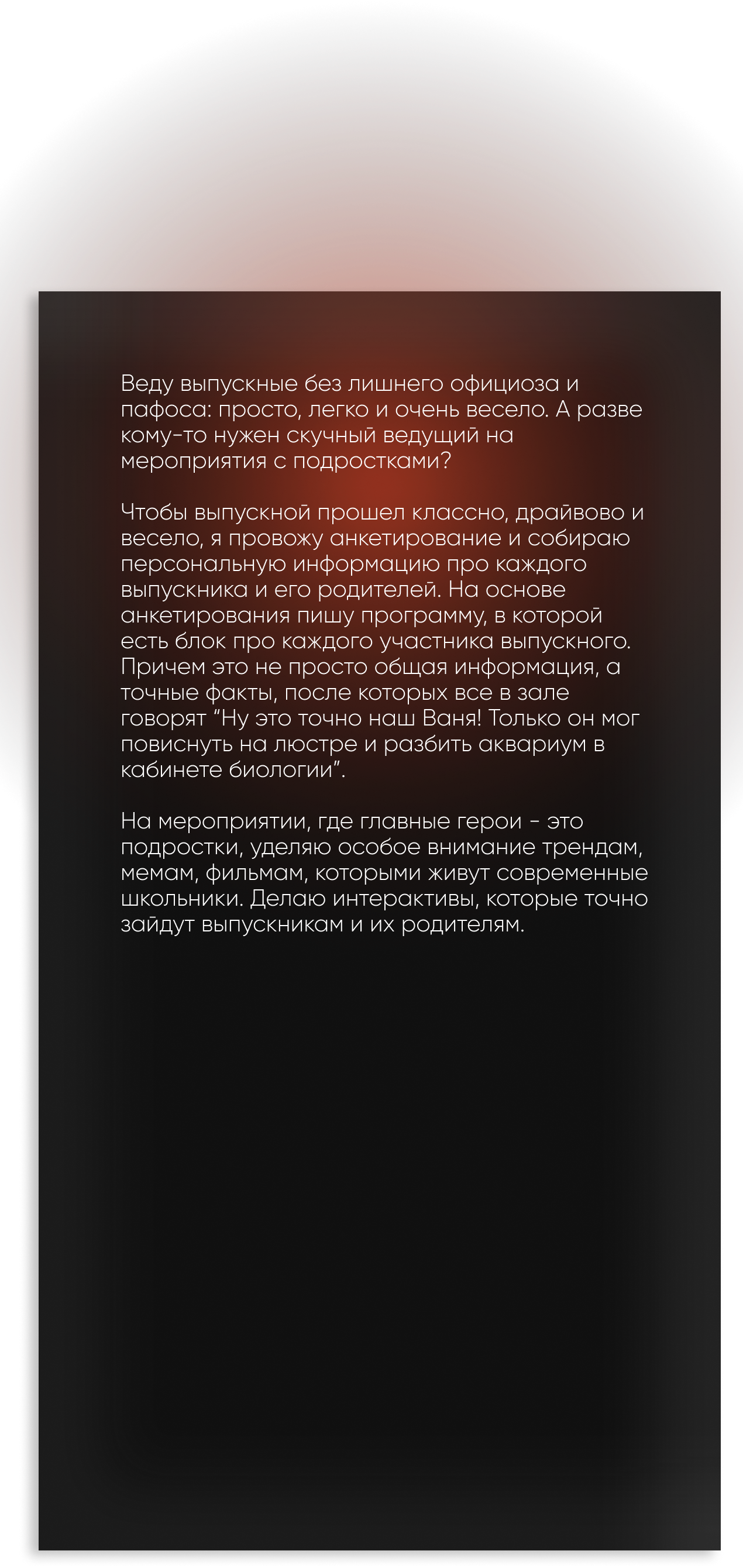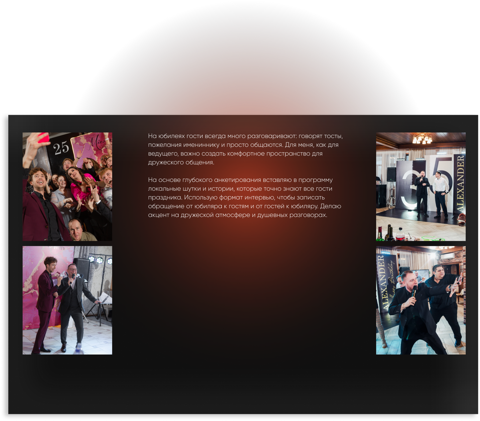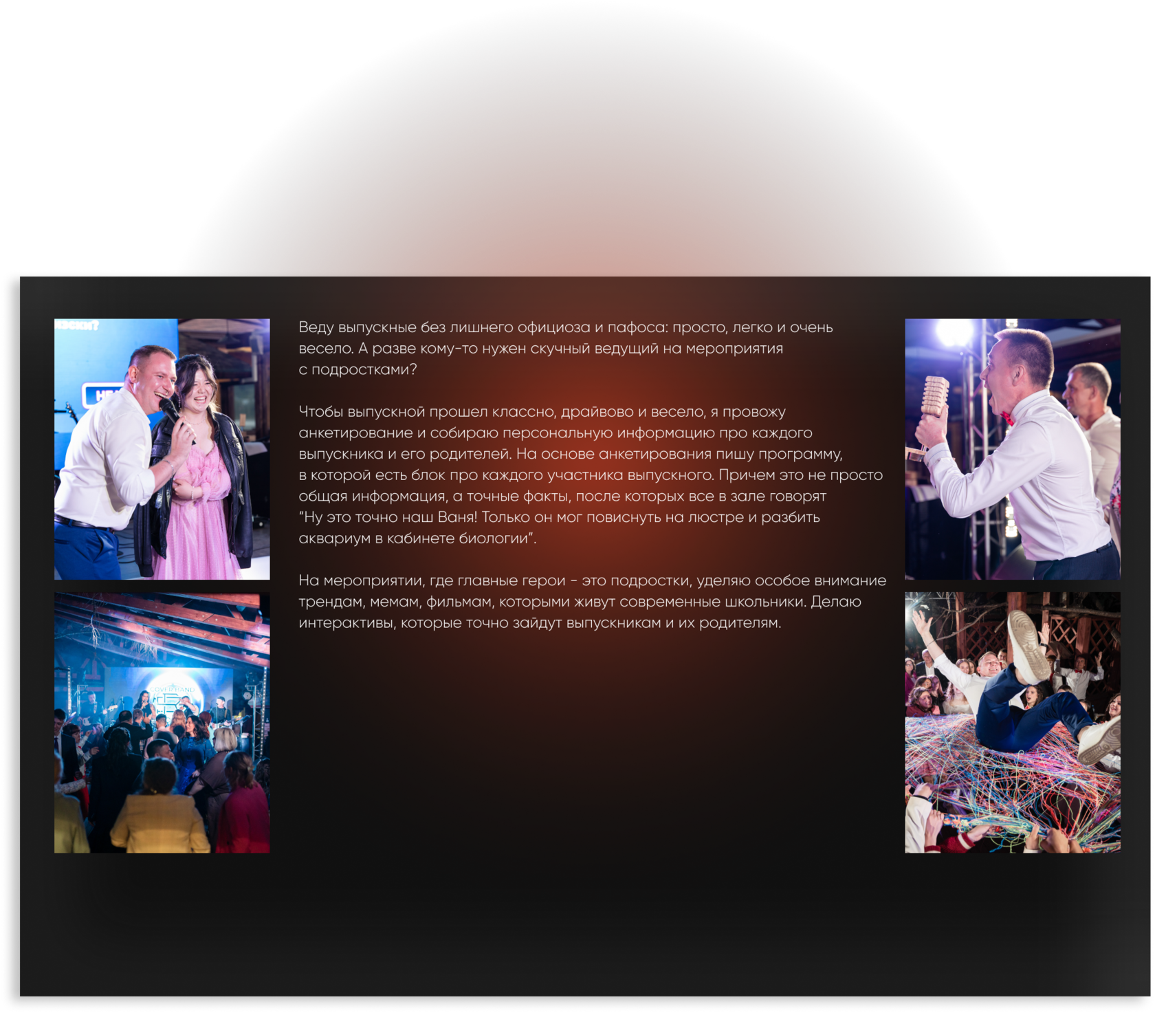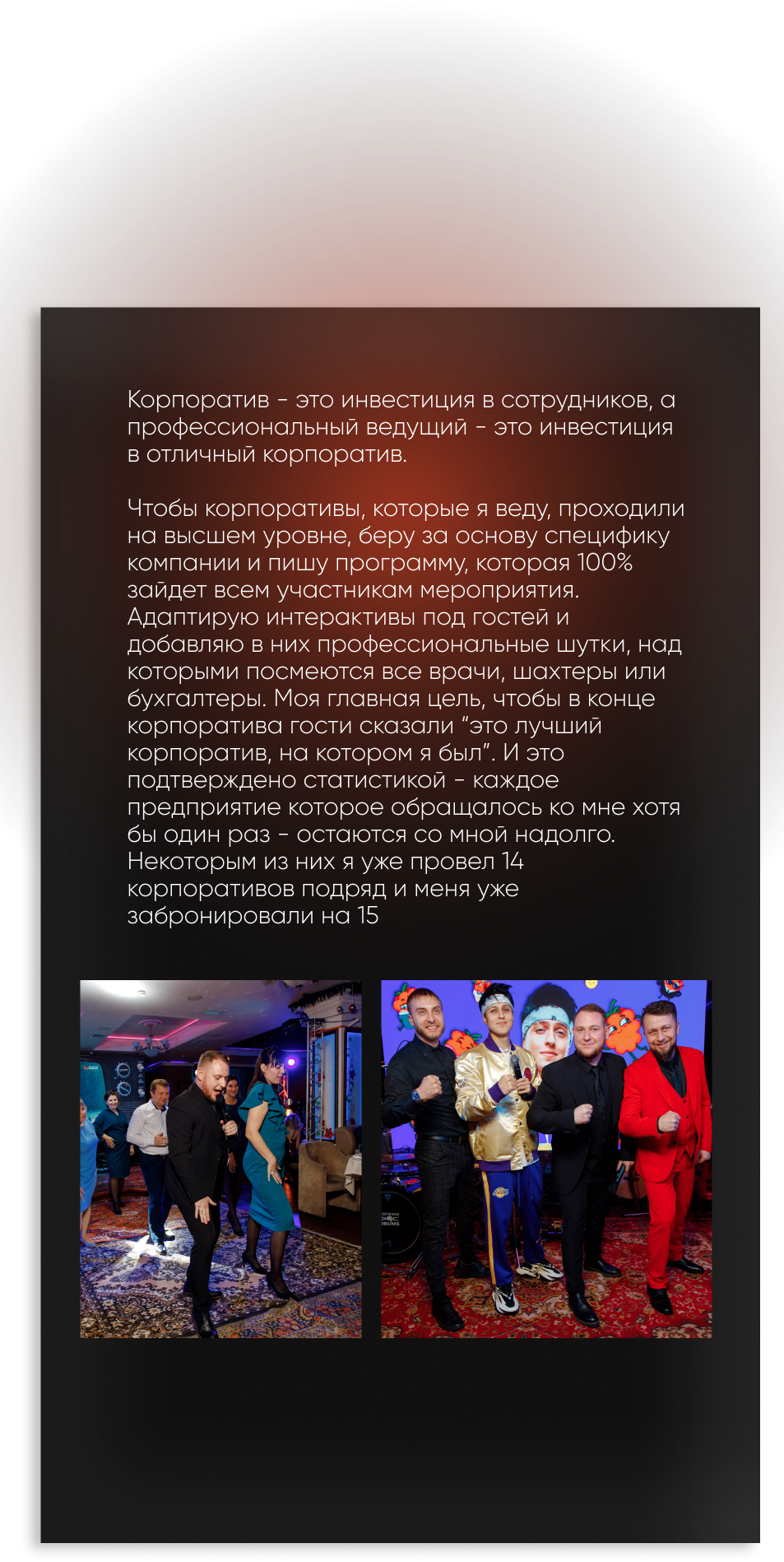 Для каждого события они индивидуальны и обсуждаются с каждым клиентом лично. Но точно могу сказать, мы простые люди, которые живут с вами в одной области и городах и с кем то даже на одной улице. Поэтому Особых гримерок, фуагра и шампанского не нужно.